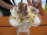 After the park (and lots of hand sanitizer), we took the girls to the wonderful Café of the Banana Split for ice cream. Masha was still in a little bit of a mood, but she ordered ice cream and reluctantly ate it. We all got really yummy sundaes for about $1.20 each. Have I mentioned recently that the food is really cheap!?!?!